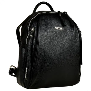 VEZZE Plecak skórzany czarny włoski srebrne okucia Indeks: 2225 Proponujemy Paniom plecak skórzany produkcji włoskiej VEZZE - nowy fason w kolorze czarnym, w...