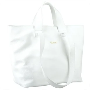 VEZZE Torba skórzana shopper bag jasny beż na ramię i do ręki złote okucia