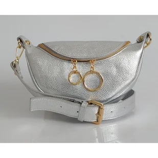Włoska listonoszka woreczek La Bomba przewieszka złote okucia srebrna skórka nabłyszczana LB38ARG