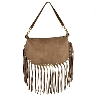 Włoska listonoszka z frędzlami skóra naturalna zamszowa brąz taupe