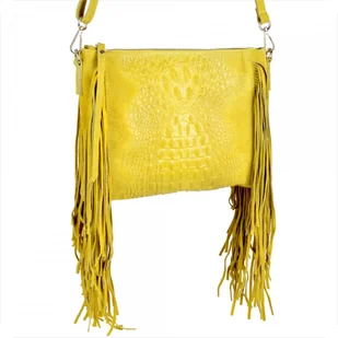 Włoska listonoszka z frędzlami skóra naturalna żółta wzór aligatora Indeks: 1803 Proponujemy Paniom super torebkę skórzaną listonoszkę marki Borse in Pelle w...