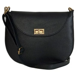Włoska skórzana listonoszka podkówka Vera Pelle , pojemna złote okucia Czarna VPP38N
