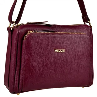 Włoska skórzana torebka bordo buraczek VEZZE złote okucia