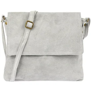 Torebka skórzana zamszowa CROCO listonoszka 2 paski jasna szara Beltimore W13 szary, srebrny