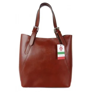 Włoska torebka skórzana na ramię ,Vera Pelle A4,shopper Brązowa V77M