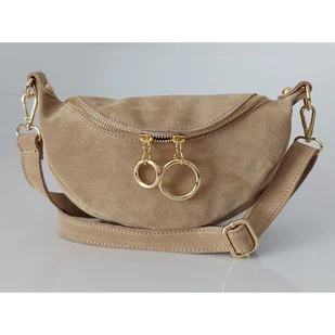 Włoska skórzana listonoszka podkówka Vera Pelle , pojemna złote okucia Beżowa VPP38T