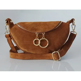 Włoska zamszowa listonoszka, nerka Vera Pelle złote okucia kółka Camel LN633C