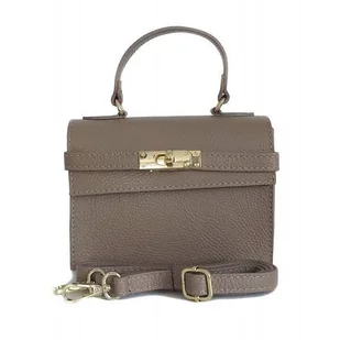 Włoska skórzana listonoszka podkówka Vera Pelle , pojemna złote okucia Beżowa VPP38T
