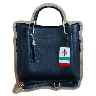 Włoski kuferek Shopperka A4 ,złote okucia + frędzelek Vera Pelle Czarny KLV33N