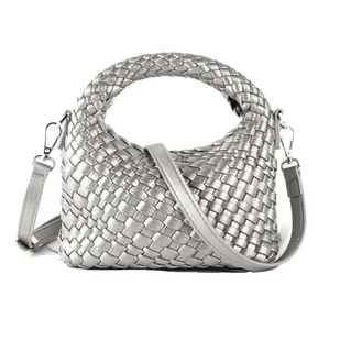 Woven Purse For Women, Small Crossbody Tote Bag with Detachable Shoulder Strap, Girls Top Handle Handbag (Silver)