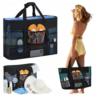 XXL DUŻA TORBA PLAŻOWA Z SIATKI SKŁADANA - ODPORNA NA PIASEK TORBY PLAŻOWE