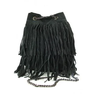 Zamszowa Listonoszka Worek Frędzle Włoska Skórzana Czarna Torebka Wl45N