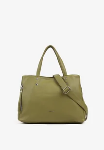Zielona Torebka Dwukomorowa Shopperka z Ozdobnym Suwakiem Sorlienne