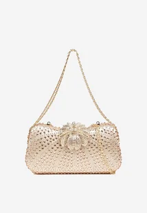 Złota Cyrkoniowa Torebka Kopertówka z Kwiatową Aplikacją i Łańcuszkiem Fessavia