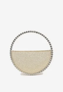Złota Geometryczna Koktajlowa Torebka z Brokatem i Cyrkoniami Fesarela