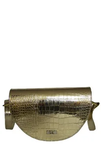 Gustowna złota mała listonoszka w najmodniejszym fasonie w kształcie półksiężyca. Popularny model wśród kobiet w każdym wieku. Usztywniona jednokomorowa a klapa zapinana na magnes. Wykonana ze skóry ekologicznej z imitacją skóry krokodyla. Listonoszka posiada metalowe srebrne okucia oraz regulowany pasek.