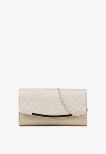 Złota Torebka Kopertówka z Łańcuszkiem Zdobiona Brokatem i Aplikacją Galilena