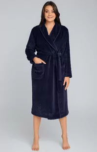 Stylowy szlafrok damski Bona to nasza propozycja na chłodne wieczory i poranki. Cudownie miękki i niezwykle ciepły, zapewni Ci komfort i wyjątkowy relaks. Klasyczny krój wykończony szalowym kołnierzem oraz praktycznymi kieszeniami. Wiązanie w pasie pięknie podkreśli sylwetkę. Model wykonany z dzianiny bi polar w bardzo ciekawy i oryginalny wzór warkocza 3D.
