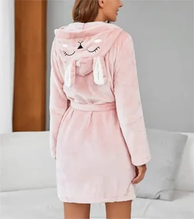 Ciepły szlafrok damski z kapturem króliczka - Różowy