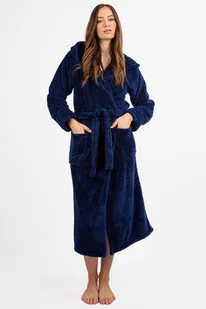 Ciepły szlafrok damski Diana ma obszerny kaptur i przyzwoity ciemnoniebieski kolor. Szlafrok posiada kaptur, dwie kieszenie po bokach oraz pasek do wiązania. Wykonany jest z przyjemnego i lekkiego materiału o nazwie LAMA, który charakteryzuje się dłuższym włosiem po obu stronach. Szlafrok pasuje do męskiego szlafroka 130 w kolorze ciemnoniebieskim.