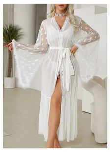 Długi szlafrok damski z prześwitującej siateczki - Biały L