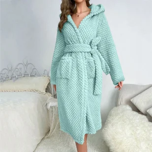 Jednolity szlafrok damski z ciepłego materiału - Zielony Uniwersalny