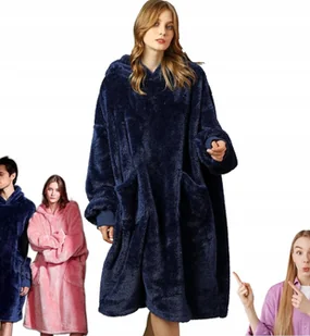 Kocobluza Koc Kocyk Bluza Oversize Z Kapturem Niebieska Miękka Na Zimne Dni