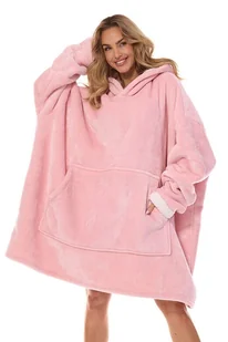 Oversize bluza wykonana jest z ciepłego materiału i ma wygodny maxi krój. Bluza wykonana jest z wyjątkowo ciepłego poliestru z miękkim włosem i miękką warstwą od wewnątrz. Ma długie rękawy i bardzo dużą kieszeń z przodu. Ma jasnoróżowy kolor. Ma wygodną szerokość i kaptur.