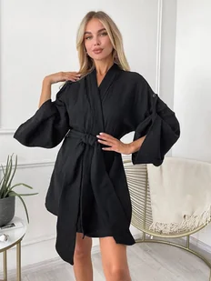 Muślinowy szlafrok damski - Czarny L