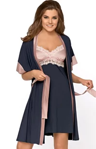 Sabrina szlafrok, Kolor granatowo-różowy, Rozmiar S, Babella - Intymna