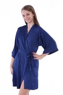 Lekka podomka jest wiązana paskiem. Damska podomka jest wyprodukowana z poliestru i elastanu. Jest lekka i miła w dotyku. Podomka ma granatowy kolor i 3/4 rękawy. Podomka wiąże się paskiem. Długość w rozmiarze S: 90 cm.