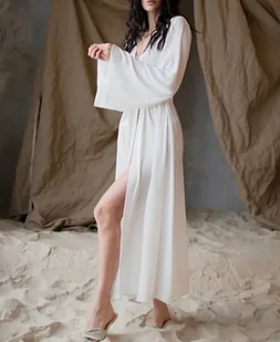 Satynowy szlafrok damski z długimi rękawami - Biały