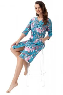 Szlafrok 392 turkusowy kwiaty - Luna
