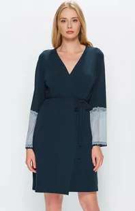 - damski szlafrok z koronkowymi wstawkami - długie rękawy