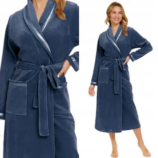 SZLAFROK DAMSKI DOCTOR NAP 1078 XL / 42 Granatowy Ciepły wygodny i komfortowy szlafrok damski bez kaptura. Wykonany z mięciutkiej bawełnianej dzianiny (welur...