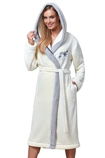 Delikatny szlafrok damski urzeknie Cię swoją miękkością. Jest puszysty i pięknie grzeje. Wygodny szlafrok wykonany jest z miękkiego w dotyku poliestru. Spodoba ci się ciepły materiał i kaptur. Szlafrok damski jest zawiązywany paskiem.