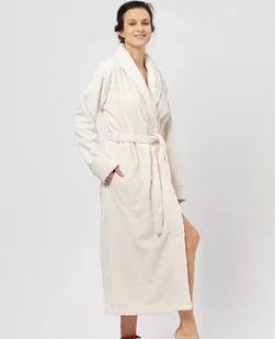 Key długi elegancki damski szlafrok damski LGL 803 o długości do połowy łydki, który łączy w sobie elegancję, komfort i praktyczność. Wykonany z niezwykle miękkiej dzianiny Velvet Super Soft, ten model zachwyca nie tylko pięknym strukturalnym wzorem, ale także wyjątkową trwałością. Głębokie boczne kieszenie oraz szeroki pas nadają mu funkcjonalności, a doszywane mankiety na dole rękawa można łatwo podwinąć.