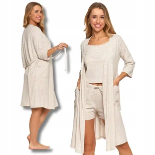 Szlafrok Damski Prążkowana Dzianina Rękaw 3/4 Wiązany Wygodny MORAJ XXL
