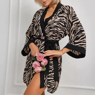 Szlafrok damski z zwierzęcym wzorem w pręgi - Brązowy