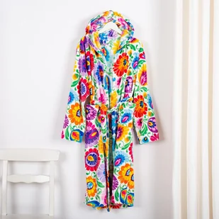 SZLAFROK FOLK DAMSKI Z KAPTUREM - WZORY ŁOWICKIE - BIAŁY - S/M Folkstar