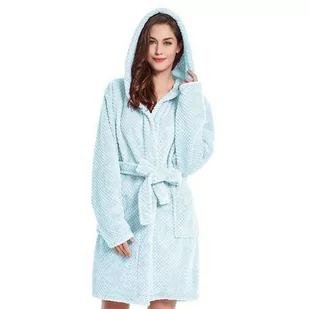 Jednolity szlafrok damski z ciepłego materiału - Niebieski