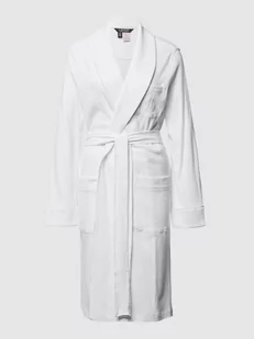 Szlafrok damski Lauren Ralph Lauren;Czysta bawełna;Luźny fason;Wzór w kontrastowym kolorze;Szalowy kołnierz;Pasek w talii;Saszetka nerka z wyhaftowanym logo;Wpuszczane kieszenie;Długość tyłu w rozmiarze S: 100 cm;Długość rękawa w rozmiarze S: 60 cm