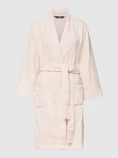 Szlafrok damski Lauren Ralph Lauren;Czysta bawełna;Luźny fason;Szalowy kołnierz;Pasek w talii;Wyhaftowane logo;Wzór w kontrastowym kolorze na rękawie;Wpuszczane kieszenie;Długość tyłu w rozmiarze S: 100 cm;Długość rękawa w rozmiarze S: 54 cm