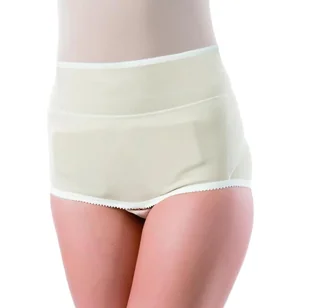 Majtki przepuklinowe dostępne są w kolorze beżowym oraz rozmiarach: S- XXL. Komfort noszenia dzięki wysokiej zawartości bawełny (88%). Są proste w budowie i łatwe w obsłudze. Majtki damskie na przepuklinę Pani Teresa. Wskazania do stosowania majtek przepuklinowych: