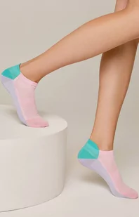 Ultrakrótkie skarpetki sportowe active z wygodną gumką sa idealne do butów sportowych. Model posiada dodatkowy delikatny ściągacz na środku stopy oraz wygodny język z gumką, który zapobiega otarciom w trakcie treningu. Skarpetki w kolorze różowo-fioletowo-morskim