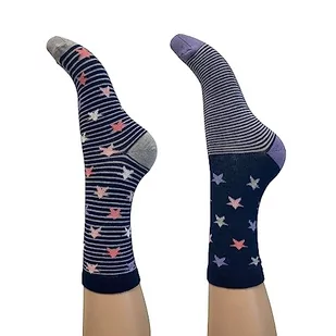 CHARNOS Damskie skarpety bambusowe w gwiazdki/paski, 2-pak, granatowe, mix jeden rozmiar (2 sztuki), granatowy, rozmiar uniwersalny