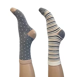 CHARNOS Damskie skarpety bambusowe w kropki/paski, 2 pary, beżowe, mix jeden rozmiar (2 sztuki), BEŻOWY, rozmiar uniwersalny