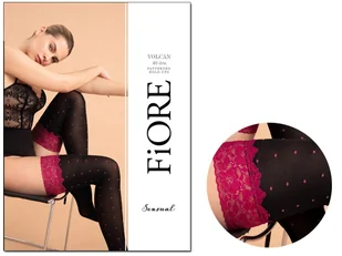Czarne pończochy z różową koronką VOLCAN 40 DEN 3 Black