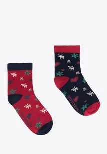 Damskie skarpetki w skandynawski wzór – zestaw 2 par granatowo-czerwone 38 / 40