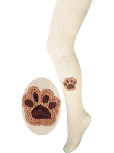 Dziecięce rajstopki w kolorze ecru, cienkie i bawełniane, które zapewniają komfort i miękkość przez cały dzień. Ozdobione urokliwą beżową łapką przyszytą z b...